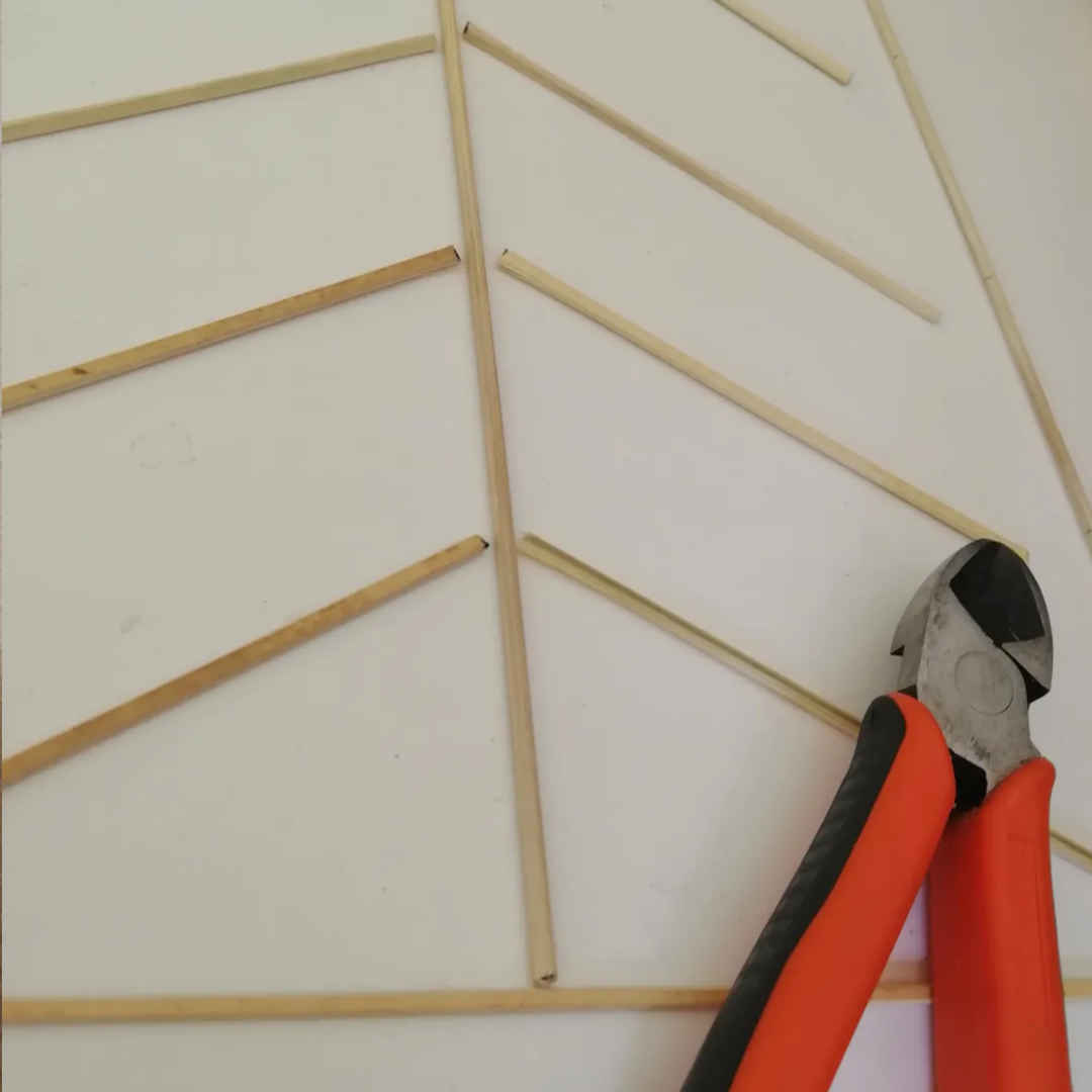 Step 3: Lim dine yder-spyd sammen, så de danner en ramme. Herefter skal du sammensætte midten og lime sammen med resten af dit mønster. Start med dine lange spyd og til sidst dine små til indeni rammen. Du kan gå på tværs, vandret og lodret. Der er mange muligheder for et godt og smukt mønster.