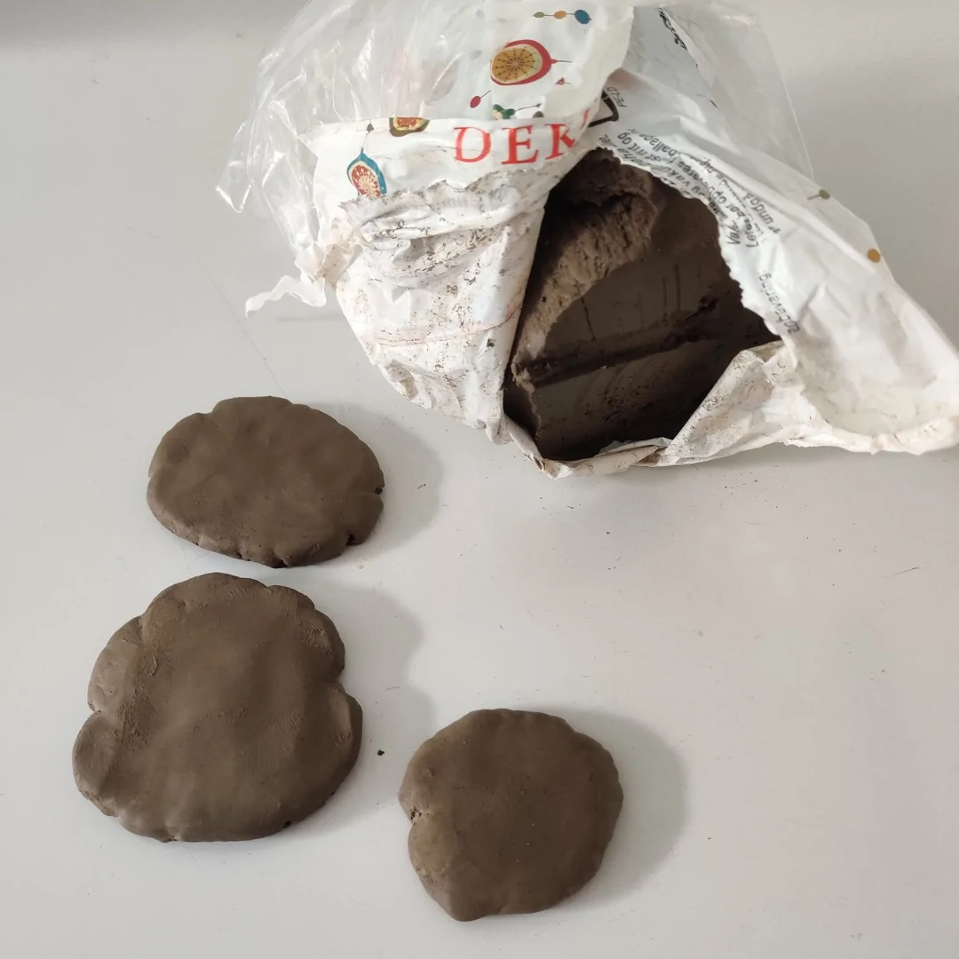 Step 1: Start med at skær en klump ler, hellere en større klump, end en for lille klump. Form dem med en kagerulle eller bare noget rundt, så de bliver flade, det er helt op til dig, hvor flade de skal være eller hvilken form de skal være.