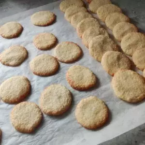 Bag småkagerne i 8 minutter, til de er gyldne i kanten.